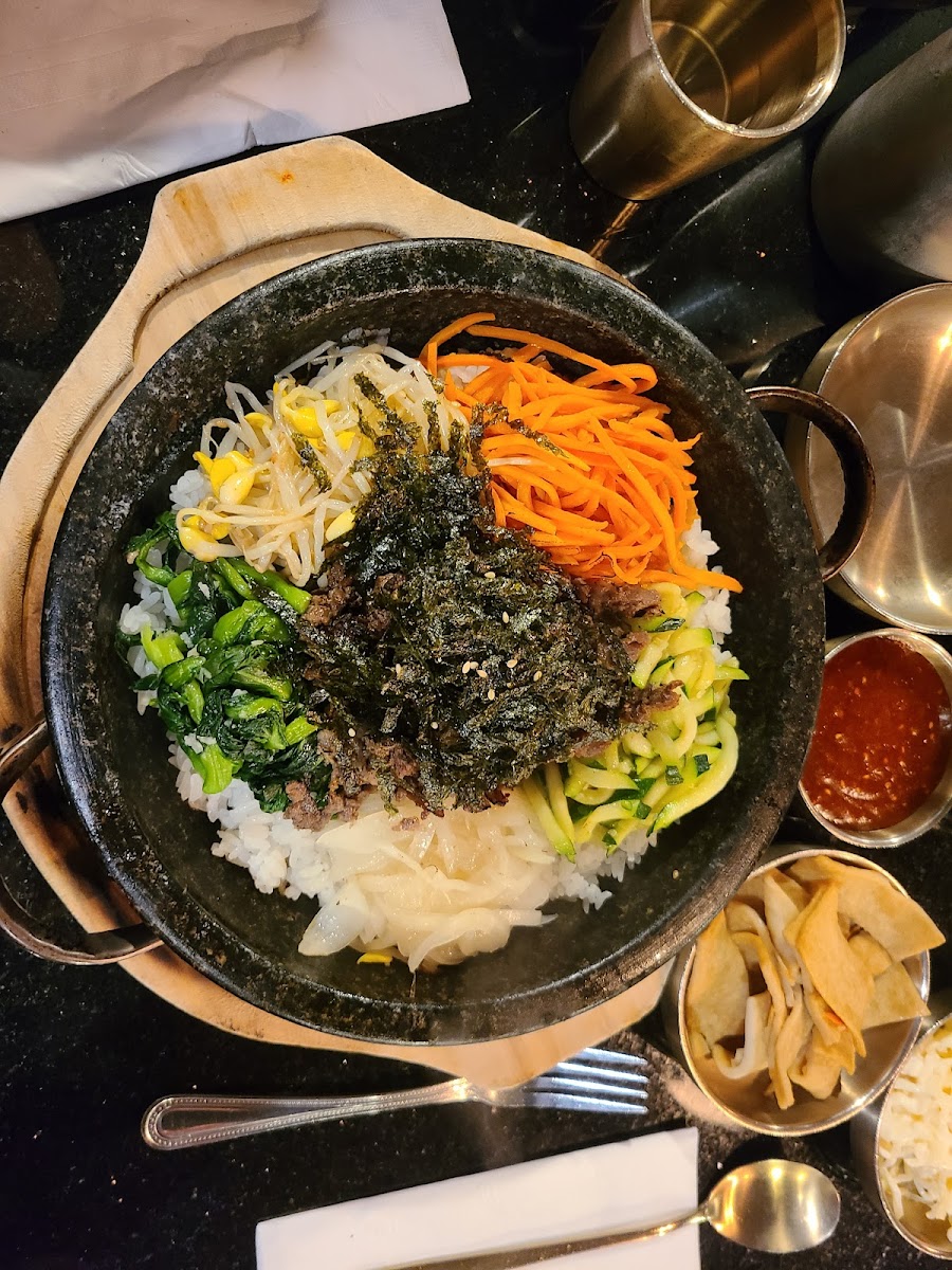 First time trying kalbijjim and I loved it! Have been wanting to try this place since it opened and am glad they started using an online waitlist. Only difficultly was finding parking since it was pretty crowded on a Friday evening. I like that they take your order before they seat you so that the food comes out a little quicker by the time you're seated. Got the braised short rib with no spice and it was soooo good. The meat was super soft and tender and the sauce was so flavorful. A little pricey in my opinion, but the portion was huge and we had leftovers from splitting one dish between 2 people. 3 other members in my group shared a kalbijjim and nengmyun and were all very full. I would definitely come again!